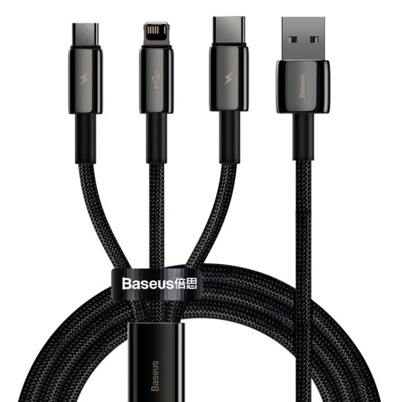 Baseus Tungsten 3w1 kabel USB - USB Typ C / Lightning / micro USB 3,5 A 1,5 m czarny (CAMLTWJ-01)